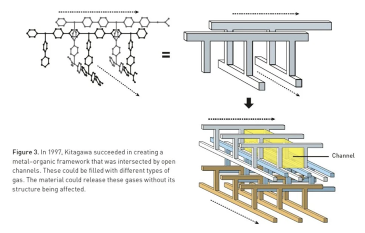 Fot. Kitagawie udało się stworzyć metalo-organiczny szkielet poprzecinany otwartymi kanałami. Kanały te mogły być wypełnione różnymi rodzajami gazu. Materiał mógł uwalniać te gazy bez naruszania swojej struktury. Źródło: Johan Jarnestad/Królewska Szwedzka Akademia Nauk