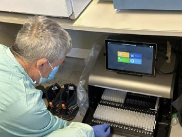 Fot. 4. Protokół typu collection-to-detection opracowany przez firmę Promega, we współpracy z Longhorn Vaccines and Diagnostics; pobrana i zabezpieczona z użyciem medium transportowego PrimeStore® Molecular Transport Medium próbka poddawana jest automatycznej izolacji kwasów nukleinowych z wykorzystaniem systemów Maxwell® RSC oraz zestawu Pathogen Total Nucleic Acid Kit, a następnie z użyciem zestawów GoTaq® przeprowadzana jest detekcja wirusów grypy typu A metodą RT-qPCR